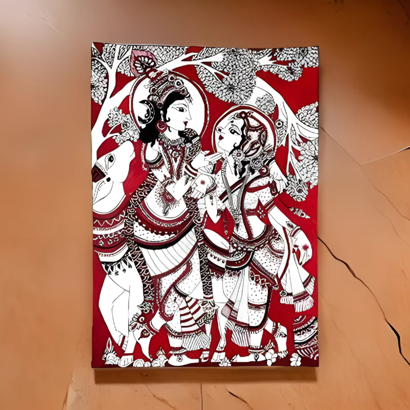 Celebrate timeless love and spiritual artistry with the Divine Rhythms Madhubani Radha Krishna Flute Paper, handcrafted by skilled women artisans at Kala Karigari.