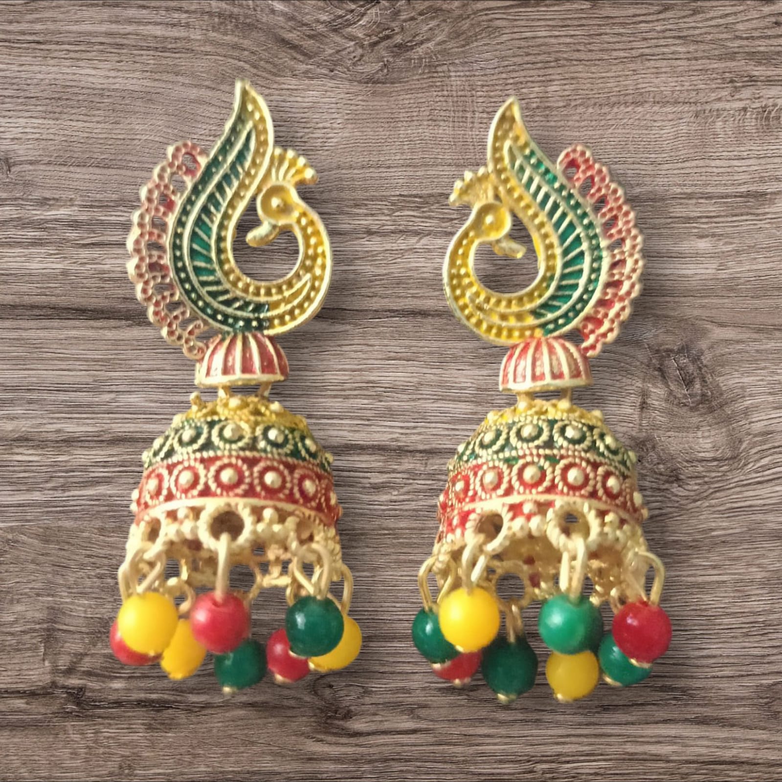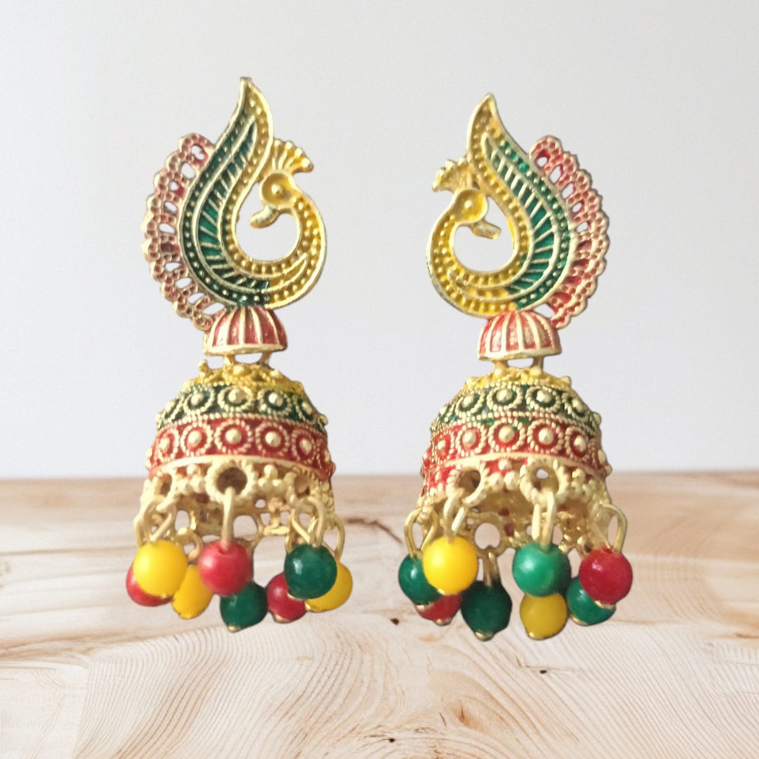 The unique peacock motif combined with vibrant multicolor enamel work makes these earrings a true statement piece. Lightweight yet grand in appearance, they are perfect for festivals, weddings, family gatherings, and casual ethnic looks.